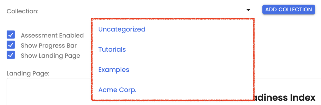 This feature helps you help you organize your assessments by collections that make sense to you.